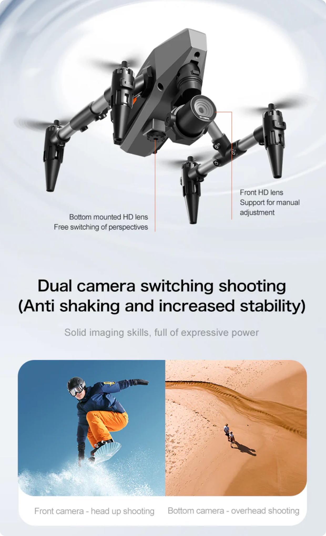 The PiHOT G1 Mini drone is the ultimate beginner-friendly UAV, designed for kids, students, and drone enthusiasts exploring new tech. Featuring a 720P dual-camera system, it delivers crisp aerial visuals and real-time transmission via WiFi-connected mobile app. Equipped with the advanced PiHOT 2.0 flight control system, this mini drone ensures stable flight with height hold, optical flow positioning, and visual positioning for precise hovering. Its durable alloy frame and reinforced body make it both crash-resistant and stylish. Easy to operate and portable, the G1 Mini supports path-drawing flight mode for autonomous adventures. Perfect for beginners, this compact drone combines innovation, durability, and fun in one sleek package!